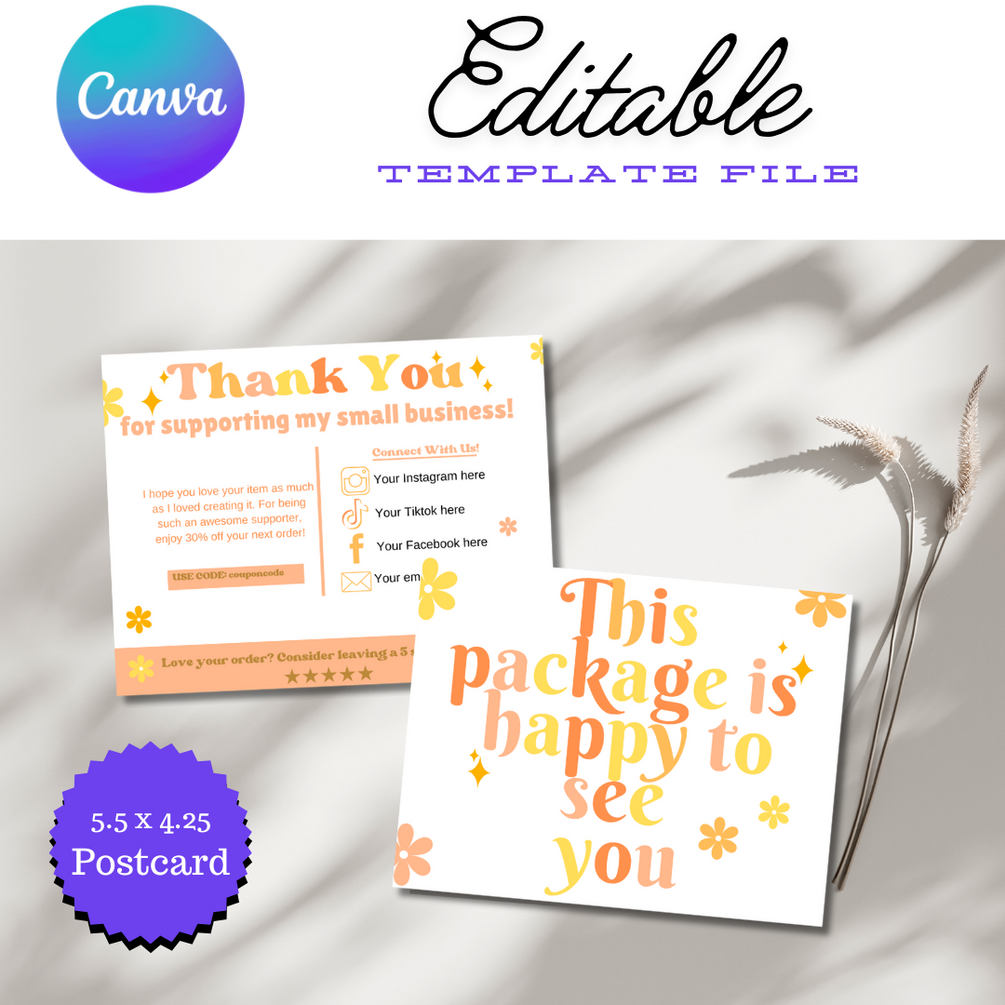 Editable Thank Card Template For Canva FRONT AND BACK